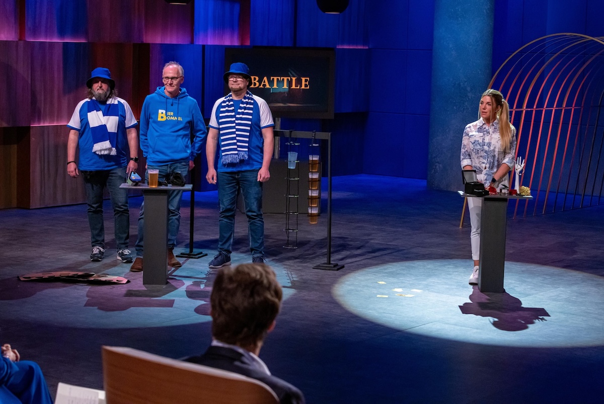Bild:Beim Battle treten Bierbommel mit Gründer Dr. Heinz von Gersum (links, M.) gegen „Lubell“ mit Gründerin Lisa Hennrich gegeneinander an. Wer kann die „Löwen“ mit seiner Geschäftsidee überzeugen und darf weiter pitchen ? Bildcredits/ Fotograf: RTL / Bernd-Michael Maurer